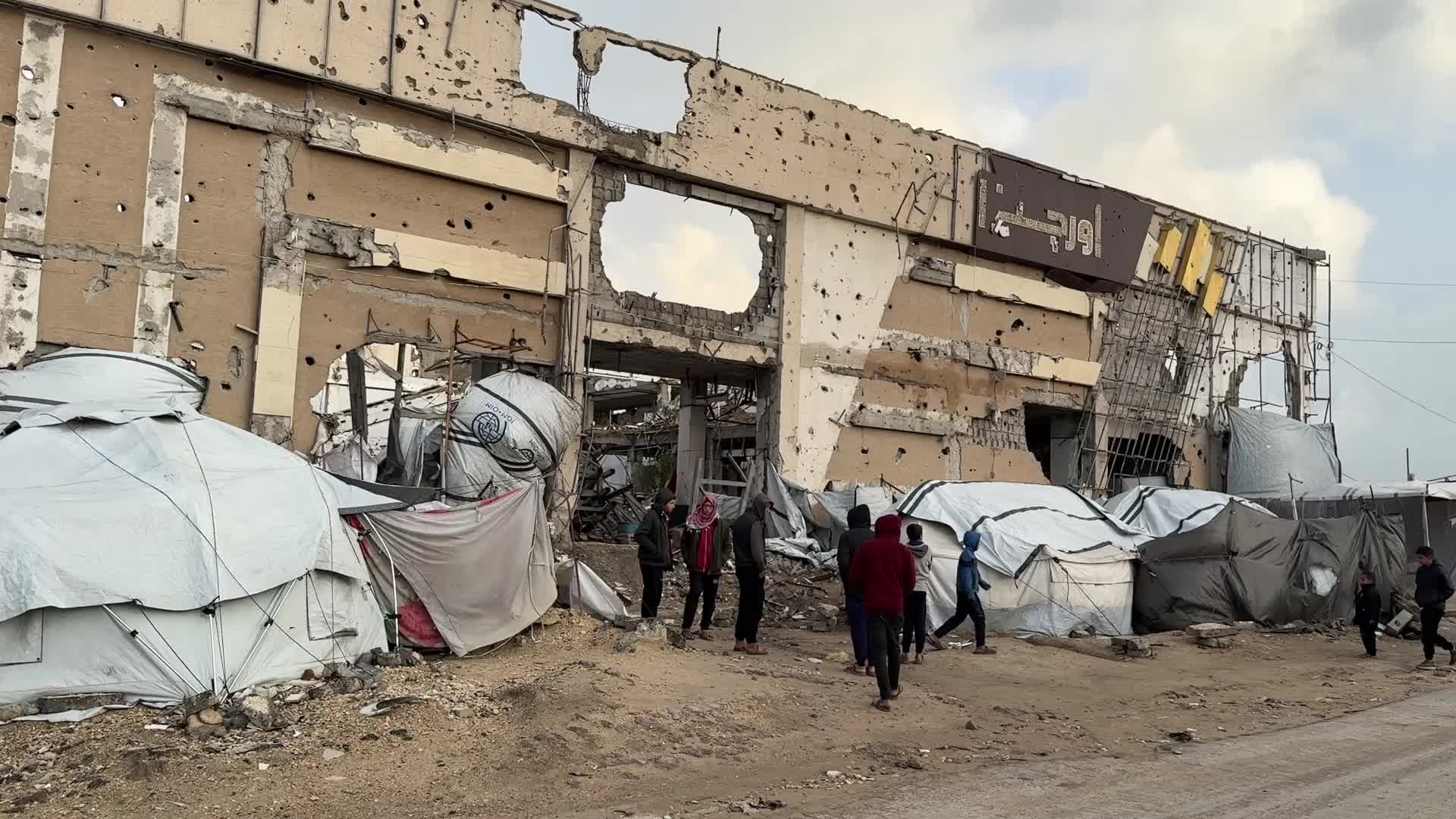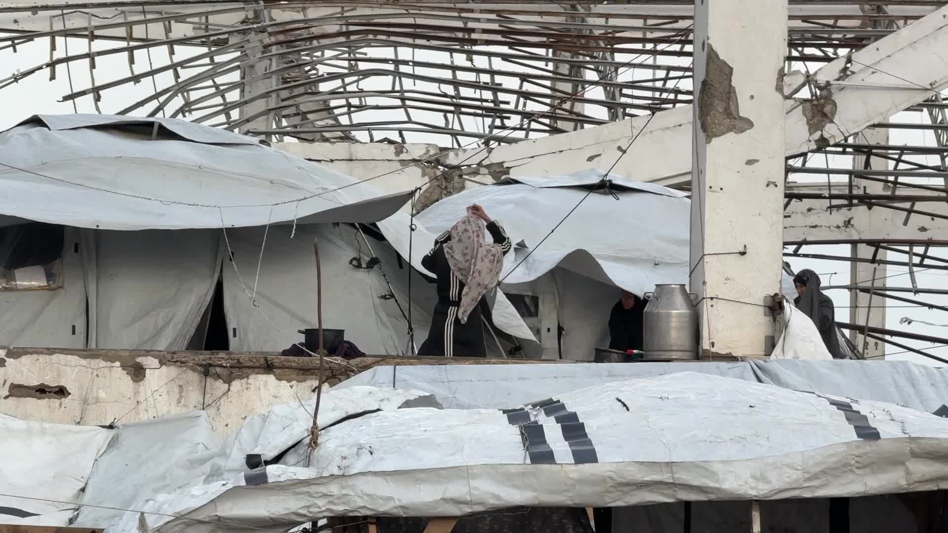 Tent Shelters Line Gaza City Shore Amid Winter Winds