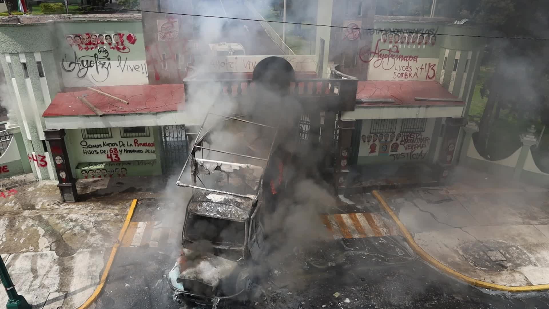 Friends and family members of the 43 missing students from Ayotzinapa held a protest at Military Camp No. 1-A.