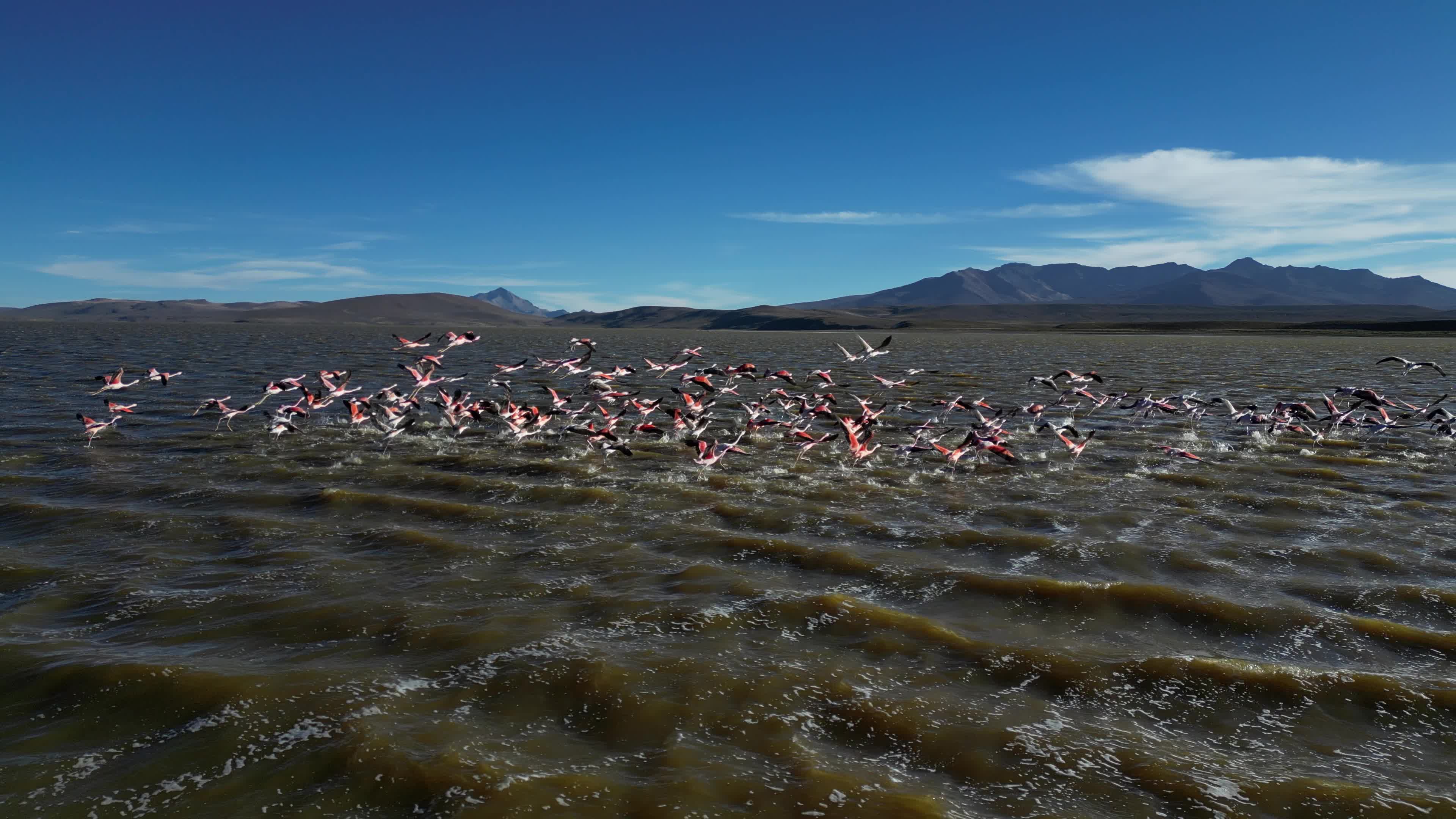 Drone videos of hundreds of flamingos