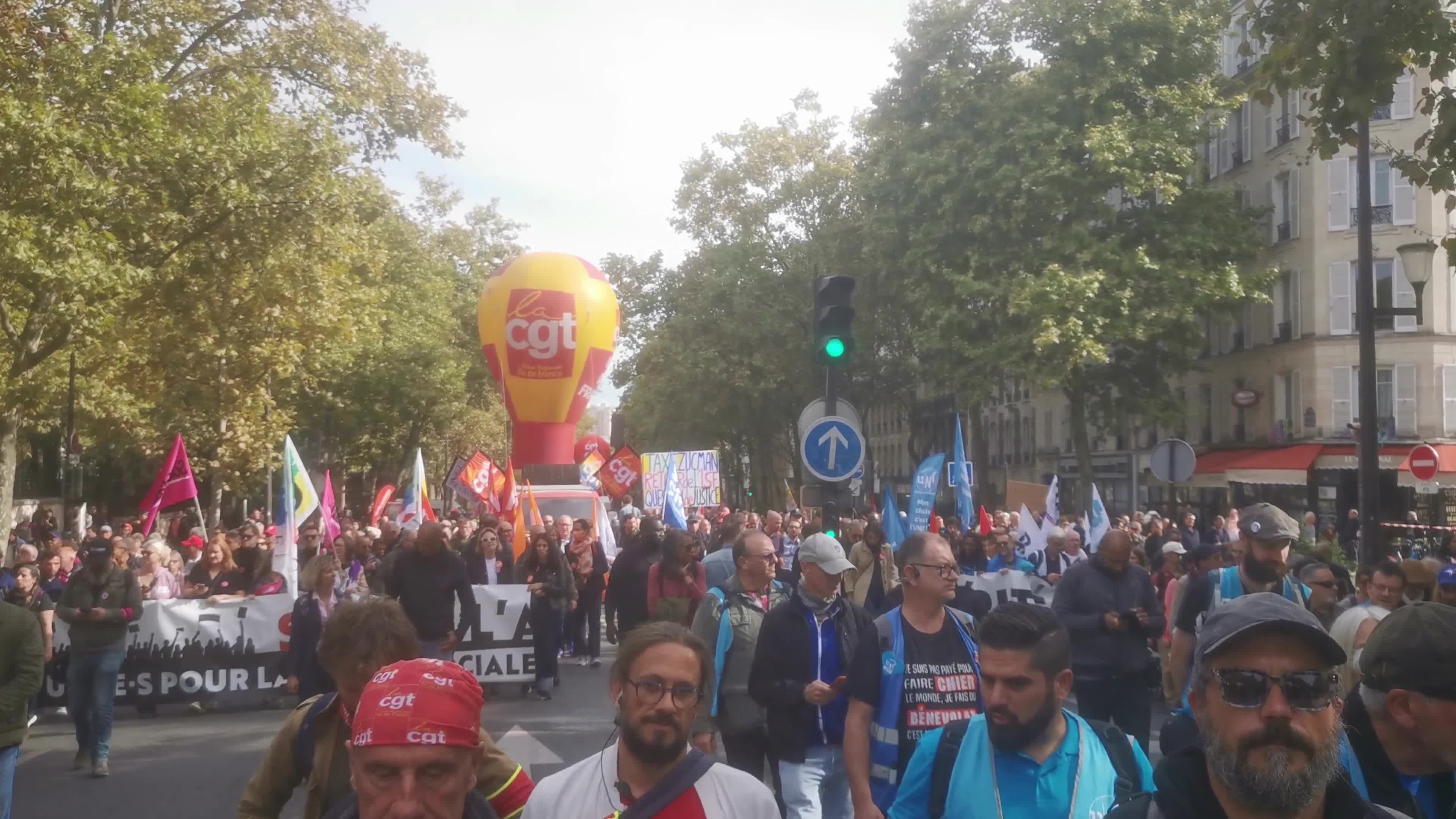 Demonstration poart of a nation-wide day of strike called by France's eight biggest workers unions for social justice measures in Paris