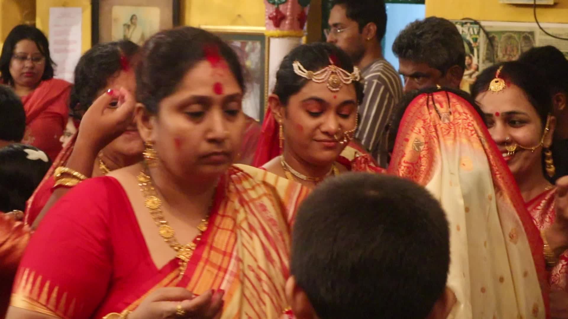 Women perform Durgapuja rituals
