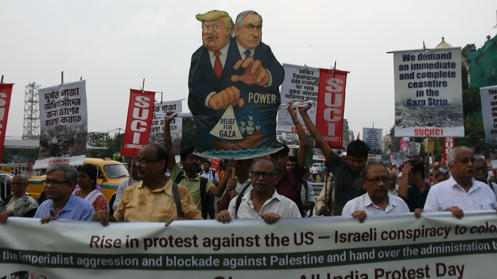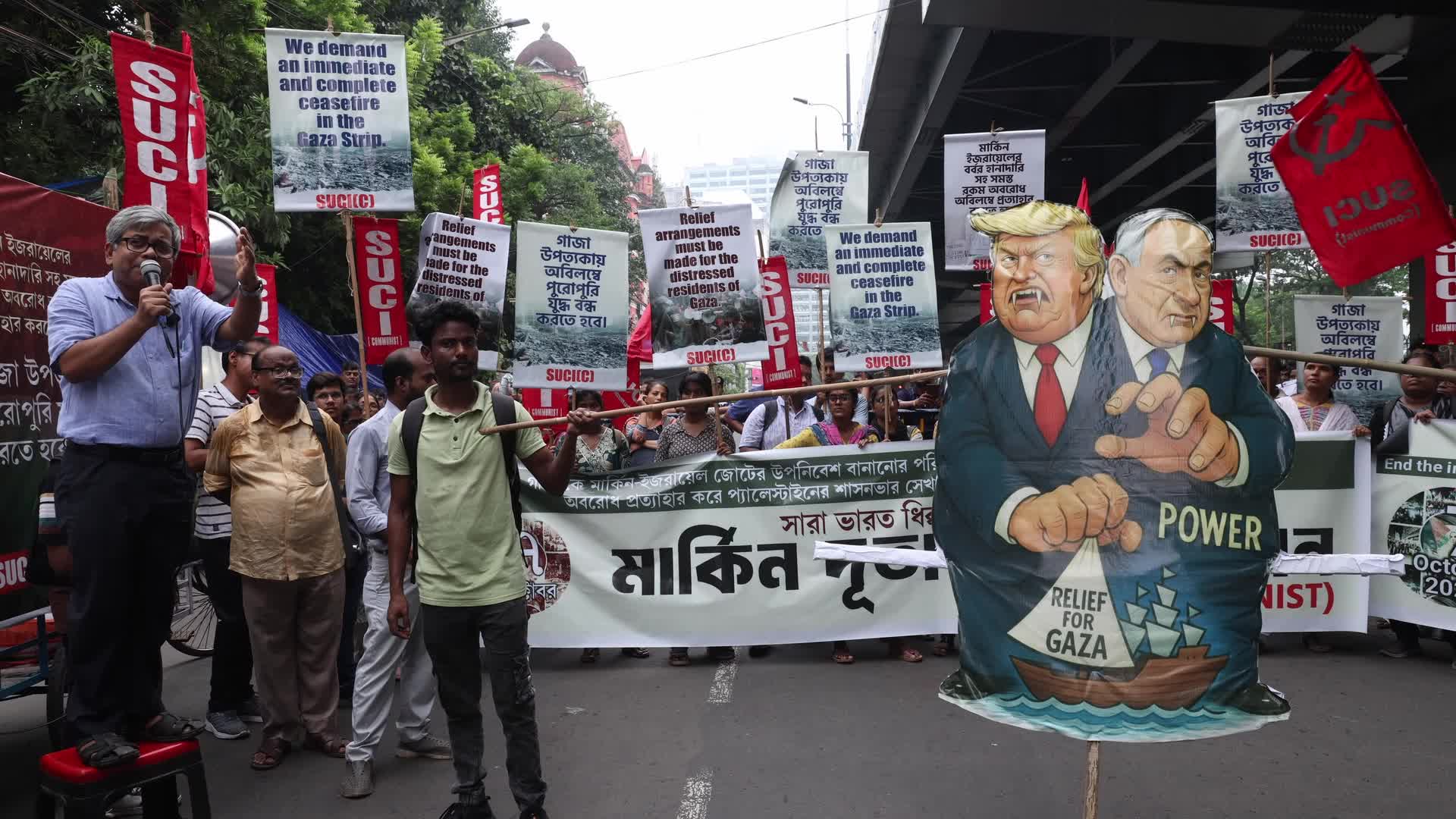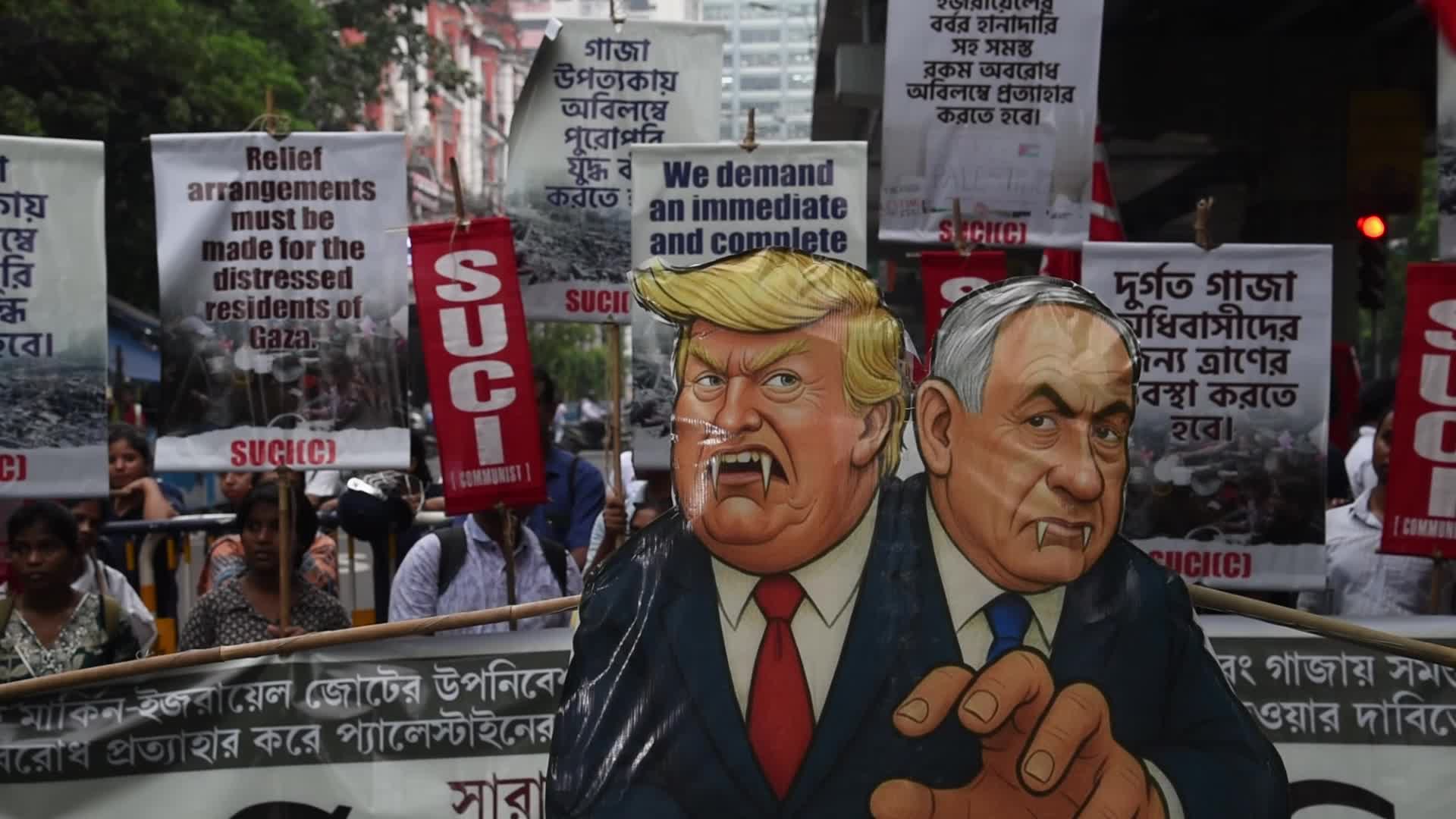 Protest Against US President Donald Trump And Israeli Prime Minister Benjamin Netanyahu In Kolkata, India