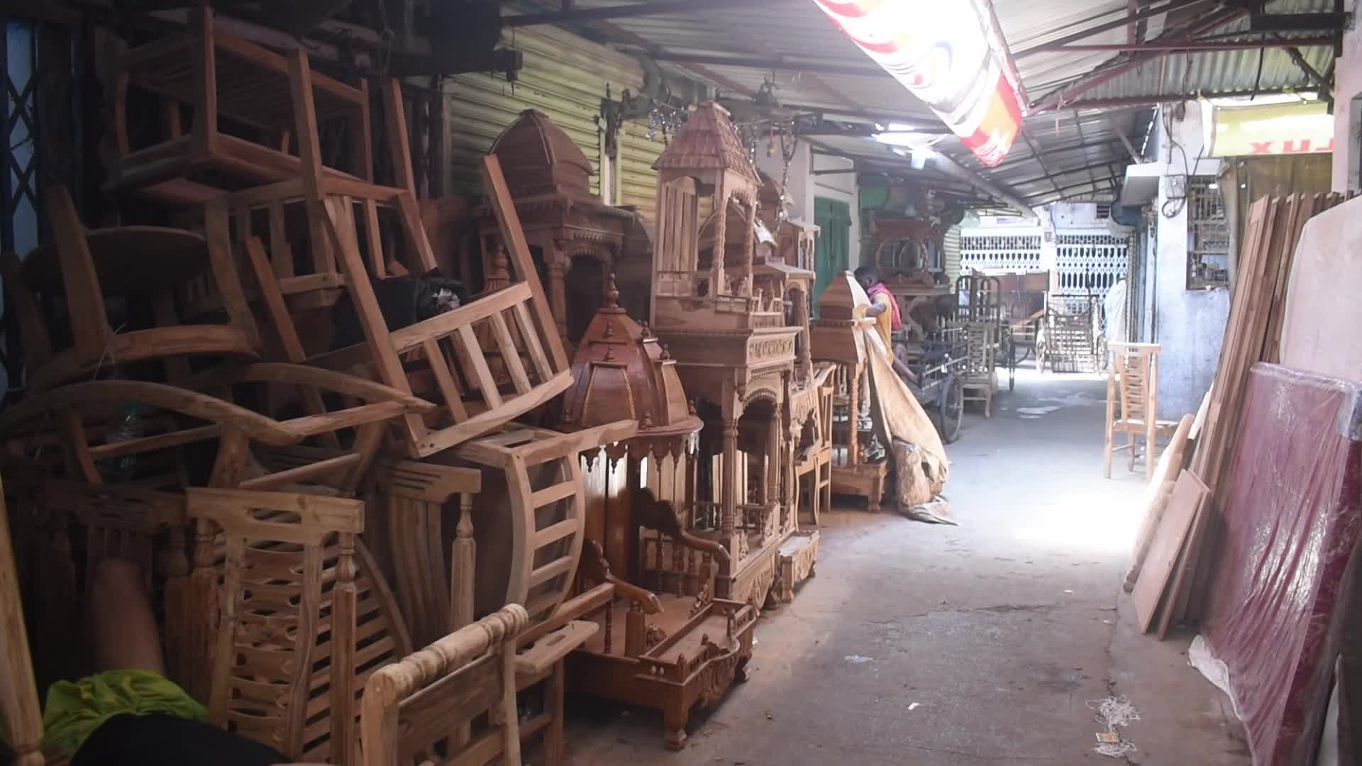 Wooden furniture market in Kolkata, India