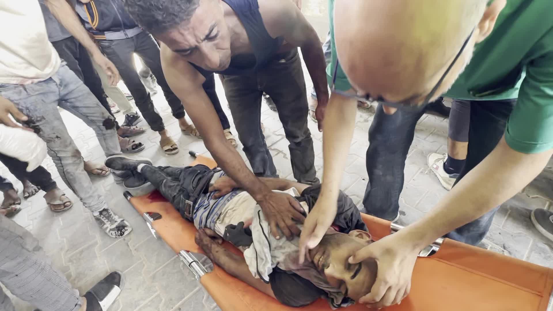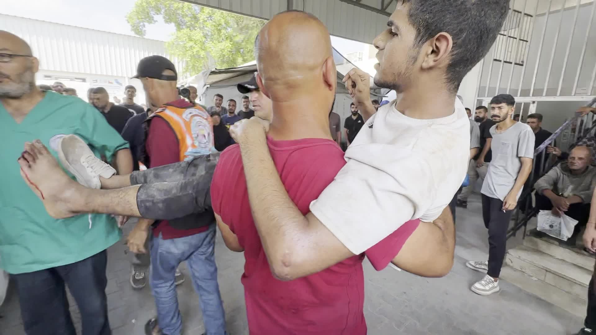 Wounded Palestinian Carried Into Al-Shifa Hospital in Gaza City
